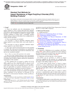 ASTM D4226-19e1 - Standard Test Methods for Impact Resistance of Rigid Poly(Vinyl Chloride) (PVC) Building Products - establishes detailed procedures for determining the energy required to crack or break rigid PVC plastic sheeting and flat sections of building products. Developed by ASTM International, this widely referenced standard specifies test methods that use a falling weight impact test to evaluate impact resistance. The procedures covered under this standard are critical for manufacturers, quality control laboratories, and researchers who need to assess the durability and reliability of rigid PVC materials used in construction applications such as siding, profiles, and panels.