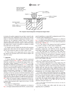 ASTM D4226-19e1 is a standard published by ASTM International. Its full title is "Standard Test Methods for Impact Resistance of Rigid Poly(Vinyl Chloride) (PVC) Building Products". This standard covers: SIGNIFICANCE AND USE 5.1 The impact strength values obtained on the flat sections of a building product profile are relevant only to the flat section that has been tested and these values do not necessarily indicate the impact resistance of the whole product, which is affected by the configuration of the profile (that is, corners, ribs, etc). 5.2 Constant weight and variable height, employed in these test methods, allow the velocity of impact to vary and, therefore, by Procedure B, can determine the energy of ductile-to-brittle transition, which cannot be determined if a variable weight is dropped from a constant height. 5.3 These test procedures have been found to be useful elements in rigid poly(vinyl chloride) (PVC) building product characterization. Compound qualification, finished product quality control, environmental and weatherability research and development studies, and fabrication tolerance prediction constitute useful applications. FIG. 2 Impact Tester 5.4 Choice of the specific impactor head configuration used is related to a variety of product attributes, such as specimen thickness and product toughness as well as abstract factors, such as the anticipated mode of failure in a specific application. The geometric uniqueness of the impactor head configurations prevents any comparison or correlation of testing results on samples tested with differing impactor head configurations. In general, the conical impactor, C.125, is useful to ensure failure of thicker specimens where the H.25 impactor caused no failure. Note 2: Equivalent surface conditions are more likely to occur when specimens are prepared by compression molding or extrusion than by injection molding. 5.5 When comparing different samples tested with the same impactor head configuration, impact resistance shall be permitted to be normalized for average specimen thickness over a reasonably broad range (for example, 1 to 3 mm).3 However, this should only be done when the surface conditions listed in 6.1... SCOPE 1.1 These test methods cover the determination of the energy required to crack or break rigid poly(vinyl chloride) (PVC) plastic sheeting and profile flat sections used in building products, as well as extruded or molded test samples, under specified conditions of impact from a freefalling standard weight striking an impactor with either of two configurations in contact with the specimen. 1.2 Two test procedures are included: 1.2.1 Procedure A, used to determine minimum impact energy required to cause failure (hole, crack, split, shatter, or tear). 1.2.2 Procedure B, used to determine minimum impact energy required to cause brittle failure. 1.3 The values stated in inch-pound units are to be regarded as standard. The values given in parentheses are mathematical conversions to SI units that are provided for information only and are not considered standard. Note 1: There is no known ISO equivalent to this standard. 1.4 The text of this standard references notes and footnotes which provide explanatory material. These notes and footnotes (excluding, those in tables in figures) shall not be considered as requirements of this standard. 1.5 This standard does not purport to address all of the safety concerns, if any, associated with its use. It is the responsibility of the user of this standard to establish appropriate safety, health, and environmental practices and determine the applicability of regulatory limitations prior to use. Specific precautionary statements are given in Section 8. 1.6 This international standard was developed in accordance with internationally recognized principles on standardization established in the Decision on Principles for the Development of International Standards, Guides and Recommendations issued by the World Trade Organization Technical Barriers to Trade (TBT) Committee.