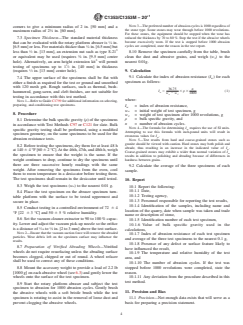 ASTM C1353/C1353M-20e1 is a standard published by ASTM International. Its full title is "Standard Test Method for Abrasion Resistance of Dimension Stone Subjected to Foot Traffic Using a Rotary Platform Abraser". This standard covers: SIGNIFICANCE AND USE 5.1 This test method provides a means to quantify the abrasion resistance of dimension stone and may be related to end-use performance, or used to comparatively rank material performance, or both. The resistance of dimension stone to abrasion, as measured on a testing machine in the laboratory, is generally only one of several factors contributing to wear performance as experienced in the actual use of the material. Calculation of predicted life should not be based on specific abrasion data alone. 5.2 The resistance of dimension stone to abrasion may be affected by factors including test conditions; type of abradant; pressure between the specimen and abradant; mounting of the specimen; and type, kind, or amount of finishing materials. 5.3 Abrasion tests utilizing the rotary platform abraser may be subject to variation due to changes in the abradant during the course of specific tests. Depending on abradant type and test specimen, the abrading wheel surface may change (that is, become clogged) due to pick-up of finishing or other materials from test specimens. To reduce this variation, the abrading wheels may require resurfacing. SCOPE 1.1 This test method covers the establishment of an index of abrasion resistance by determination of loss of volume resulting from abrasion of dimension stone as described in Terminology C119 and is based on Guide G195. 1.2 The values stated in either inch-pound units or SI units are to be regarded separately as standard. The values stated in each system may not be exact equivalents; therefore, each system shall be used independently of the other. Combining values from the two systems may result in non-conformance with the standard. 1.2.1 Exception—The formula for calculation of the result of this test method relies on the use of SI units; all measurements of weight in this test method shall be recorded in SI units. 1.2.2 Exception—As the equipment used in this test method was designed and initially fabricated using dimensions in inch-pound units, the values of equipment dimensions stated in SI units have been given as exact conversions to the nearest 0.1 mm. 1.3 This test method uses a rotary platform abraser to determine the loss in volume of dimension stone caused by abrasion under controlled conditions. 1.4 This test method is useful in indicating the differences in abrasion resistance between the various dimension stones. This test method provides one element in comparing stones of the same type. 1.5 This standard does not purport to address all of the safety concerns, if any, associated with its use. It is the responsibility of the user of this standard to establish appropriate safety, health, and environmental practices and determine the applicability of regulatory limitations prior to use. 1.6 This international standard was developed in accordance with internationally recognized principles on standardization established in the Decision on Principles for the Development of International Standards, Guides and Recommendations issued by the World Trade Organization Technical Barriers to Trade (TBT) Committee.