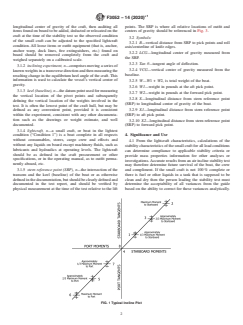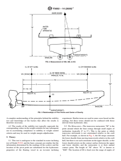 SIGNIFICANCE AND USE 4.1 From the lightcraft characteristics, calculations of the stability characteristics of the small craft for all load conditions can determine compliance to applicable stability criteria or provide mass properties information for other analyses or investigations. Accurate results from an air incline stability test may therefore determine future survival of the boat, the crew and compliment. If the small craft is not 100 % complete or there is fuel or other liquids in a tank that is supposed to be clean and dry then the person leading the stability test must determine the acceptability of all variances from the guide based on the ability to correct for these variances analytically. A complete understanding of the principles behind the stability test and knowledge of the factors that affect the results is therefore necessary. 4.2 The results of the stability test typically supersede the corresponding values in the weight estimate for any subsequent use in ascertaining compliance to stability or weight control criteria and may be used in weight margin adjudication. SCOPE 1.1 This guide covers the determination of a small boat’s lightcraft characteristics. The air incline stability test can be considered two separate tasks; a deadweight survey and an air-inclining experiment. The stability test is recommended, but not required, for all small craft upon their construction completion or after major conversions, or both, where stability information is required. It is typically conducted indoors and an enclosed facility to protect the vessels from unprotected environmental conditions. 1.2 This standard does not purport to address all of the safety concerns, if any, associated with its use. It is the responsibility of the user of this standard to establish appropriate safety, health, and environmental practices and determine the applicability of regulatory limitations prior to use. 1.3 This international standard was developed in accordance with internationally recognized principles on standardization established in the Decision on Principles for the Development of International Standards, Guides and Recommendations issued by the World Trade Organization Technical Barriers to Trade (TBT) Committee.