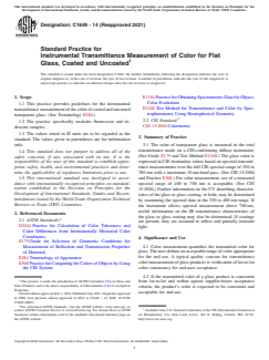 ASTM C1649-14(2021) - Standard Practice for Instrumental Transmittance Measurement of Color for Flat Glass, Coated and Uncoated
