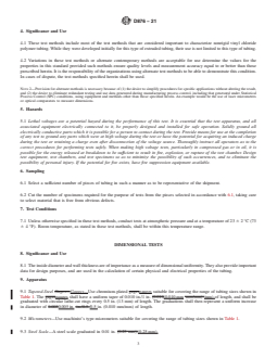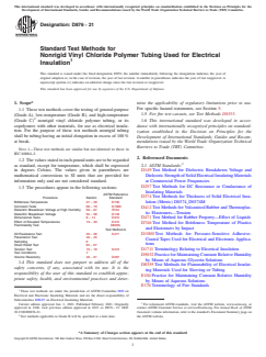 ASTM D876-21: Standard Test Methods for Nonrigid Vinyl Chloride Polymer Tubing Used for Electrical Insulation defines comprehensive testing procedures for evaluating the properties of nonrigid vinyl chloride polymer (PVC) tubing intended for electrical insulation. Developed by ASTM International, this standard is widely used to ensure consistent quality in both general-purpose, low-temperature, and high-temperature nonrigid PVC or its copolymers. This document provides essential guidance to manufacturers, suppliers, and users of flexible vinyl insulation tubing, ensuring safety, performance, and regulatory compliance in various electrical applications.