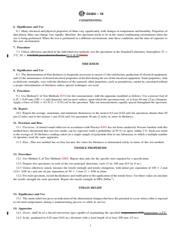 thin plastic films can change very rapidly; therefore, the specimen needs to be in the stated conditioning environment when the