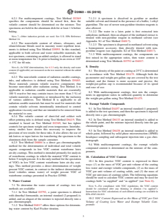 - VOC Content Determination: The standard identifies procedures for measuring the amount of volatile organic compounds released from coatings under specified conditions, excluding water and certain exempt volatile compounds that do not undergo significant photochemical reactions.