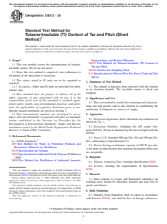 D4072 Test Method for Toluene-Insoluble (TI) Content of Tar and Pitch