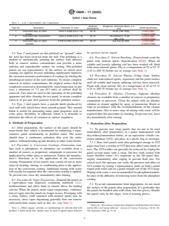 ASTM D609-17(2022) is a standard published by ASTM International. Its full title is "Standard Practice for Preparation of Cold-Rolled Steel Panels for Testing Paint, Varnish, Conversion Coatings, and Related Coating Products". This standard covers: ABSTRACT Test SIGNIFICANCE AND USE 4.1 The procedures described in this practice are designed to provide steel panels with a uniform and reproducible surface for testing of paint, varnish, lacquer, conversion coatings, and related products. SCOPE 1.1 This practice covers various types of cold rolled steel panels and the procedures to be followed in their preparation for testing paint, varnish, lacquer, conversion coatings, and related products. 1.2 The procedures are as follows: Procedure A—Conversion coatings (phosphates, chromates, etc.) Procedure B—Vapor degreasing Procedure C—Solvent brushing Procedure D—Solvent wiping Procedure E—Alkaline cleaning 1.3 The values stated in SI units are to be regarded as the standard. The values given in parentheses are for information only. 1.4 This standard does not purport to address all of the safety concerns, if any, associated with its use. It is the responsibility of the user of this standard to establish appropriate safety, health, and environmental practices and determine the applicability of regulatory limitations prior to use. 1.5 This international standard was developed in accordance with internationally recognized principles on standardization established in the Decision on Principles for the Development of International Standards, Guides and Recommendations issued by the World Trade Organization Technical Barriers to Trade (TBT) Committee.