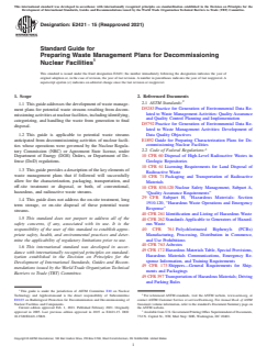 ASTM E2421-15(2021) - Standard Guide for Preparing Waste Management Plans for Decommissioning Nuclear Facilities