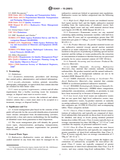 Keywords: decommissioning, nuclear facilities, waste characterization, waste management plan, waste packaging, waste disposal, radioactive waste, hazardous waste, quality assurance, transportation, ASTM E2421-15(2021)
