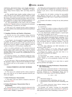 ABSTRACT This performance specification establishes the evaluation of specific performance characteristics of any washable or dry-cleanable soft window covering fabrics, whether lined or unlined, for household use. The characteristics to be evaluated prior to repeated refurbishing include, but are not limited to, seam strength and appearance, uniformity of shade (part to part), and size consistency (side to side and part to part). Consequently, the characteristics to be evaluated after repeated refurbishing include, but are not limited to, colorfastness, dimensional change, seam strength, appearance, and compatibility of components. Compatibility of dimensional change between drapery fabric and lining should be noted. SIGNIFICANCE AND USE 4.1 This specification may be used to evaluate pertinent performance characteristics of washable and drycleanable soft window coverings, whether lined or unlined. 4.1.1 Soft window covering characteristics to be evaluated prior to repeated refurbishing include, but are not limited to, seam strength and appearance, uniformity of shade (part to part), and size consistency (side to side and part to part). 4.1.2 Soft window covering characteristics to be evaluated after repeated refurbishing include, but are not limited to, colorfastness, dimensional change, seam strength, appearance, and compatibility of components. Compatibility of dimensional change between drapery fabric and lining should be noted. 4.2 The specified home laundry machine settings do not reflect advances in cycle design or special features of washer and dryers which enhance the performance of these products. The standard washing and drying procedure reflects the minimum capabilities of current home laundering equipment used by consumers in accordance with care label instructions. 4.2.1 The reproducibility of the results of the test method specified in 9.2 depends on the use of procedures for automatic home laundering as specified on care labels. 4.3 The areas to be evaluated and the criteria assigned to these areas shall be set by mutual agreement between purchaser and supplier. SCOPE 1.1 This specification covers the evaluation of specific performance characteristics of any washable or drycleanable soft window covering. 1.2 This specification is not a specification for washable or drycleanable soft window coverings but may be used by mutual agreement between the purchaser and the supplier to establish material specifications. 1.3 This standard does not purport to address all of the safety concerns, if any, associated with its use. It is the responsibility of the user of this standard to establish appropriate safety, health, and environmental practices and determine the applicability of regulatory limitations prior to use. 1.4 This international standard was developed in accordance with internationally recognized principles on standardization established in the Decision on Principles for the Development of International Standards, Guides and Recommendations issued by the World Trade Organization Technical Barriers to Trade (TBT) Committee.
