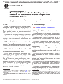 ASTM G223-23 - Standard Test Method for Measuring Friction and Adhesive Wear Properties of Lubricated and Nonlubricated Materials Using the Twist Compression Test (TCT)
