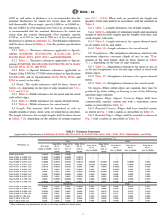 - Outlines strict tolerances for thickness, width, length, weight, and straightness to maintain consistency.