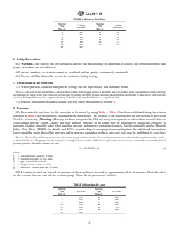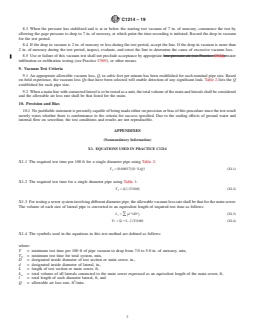 specified in Table 2 and the formulas contained in the Appendixes. The test time is the time required for the vacuum to drop from