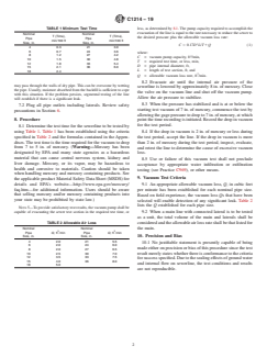 using Table 1. Table 1 has been established using the criteria 8.4 If the drop in vacuum is 2 in. of mercury or less during