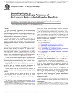 ASTM E2953-14(2020)e1 - Standard Specification for Evaluating Accelerated Aging Performance of Electrochromic Devices in Sealed Insulating Glass Units