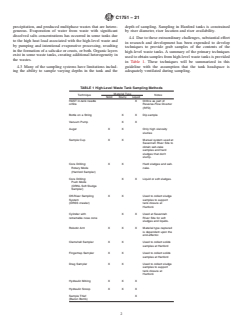 SIGNIFICANCE AND USE 4.1 Obtaining samples of high-level waste created during the reprocessing of spent nuclear fuels presents unique challenges. Generally, high-level waste is stored in tanks with limited access to decrease the potential for radiation exposure to personnel. Samples must be obtained remotely because of the high radiation dose from the bulk material and the samples, samples require shielding for handling, transport, and storage. The quantity of sample that can be obtained and transported is small due to the hazardous nature of the samples as well as their high radiation dose. 4.2 Many high-level wastes have been treated to remove strontium (Sr) or cesium (Cs), or both, have undergone liquid volume reductions through pumping and forced evaporation or have been pH modified, or both, to decrease corrosion of the tanks. These processes, as well as waste streams added from multiple process plant operations, often resulted in precipitation, and produced multiphase wastes that are heterogeneous. Evaporation of water from waste with significant dissolved salts concentrations has occurred in some tanks due to the high heat load associated with the high-level waste and by pumping and intentional evaporative processing, resulting in the formation of a saltcake or crusts, or both. Organic layers exist in some waste tanks, creating additional heterogeneity in the wastes. 4.3 Many of the sampling systems have limitations including the ability to sample varying depths in the tank and the depth of sampling. Sampling in Hanford tanks is constrained by riser diameter, riser location and riser availability. 4.4 Due to these extraordinary challenges, substantial effort in research and development has been expended to develop techniques to provide grab samples of the contents of the high-level waste tanks. A summary of the primary techniques used to obtain samples from high-level waste tanks is provided in Table 1. These techniques will be summarized in this guideline with the assum... SCOPE 1.1 This guide addresses techniques used to obtain samples from tanks containing high-level radioactive waste created during the reprocessing of spent nuclear fuels. Guidance on selecting appropriate sampling devices for waste covered by the Resource Conservation and Recovery Act (RCRA) is also provided by the United States Environmental Protection Agency (EPA) (1).2 Vapor sampling of the head-space is not included in this guide because it does not significantly affect slurry retrieval, pipeline transport, plugging, or mixing. 1.2 The values stated in inch-pound units are to be regarded as standard. No other units of measurement are included in this standard. 1.3 This standard does not purport to address all of the safety concerns, if any, associated with its use. It is the responsibility of the user of this standard to establish appropriate safety and health practices and determine the applicability of regulatory limitations prior to use. 1.4 This international standard was developed in accordance with internationally recognized principles on standardization established in the Decision on Principles for the Development of International Standards, Guides and Recommendations issued by the World Trade Organization Technical Barriers to Trade (TBT) Committee.