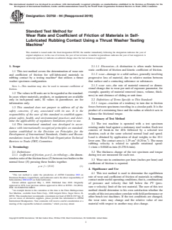 (Test Method)Standard Test Method for Wear Rate and Coefficient of Friction of Materials in Self-Lubricated Rubbing Contact Using a Thrust Washer Testing Machine