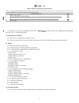 and type of interlayer used in the overall configuration. ball from rest onto the test specimen within 25 mm of center.