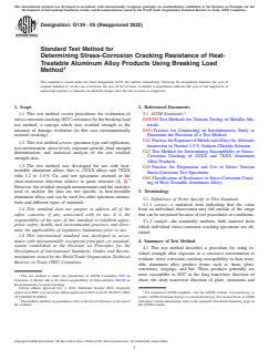 ASTM G139-05(2022) - Standard Test Method for Determining Stress-Corrosion Cracking Resistance of Heat-Treatable Aluminum Alloy Products Using Breaking Load Method