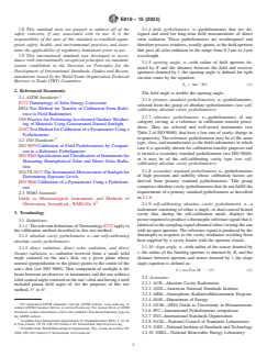 1.3 This test method is relevant primarily for the calibration of reference pyrheliometers with field angles of 5° to 6°, using as the primary reference instrument a self-calibrating absolute cavity pyrheliometer having field angles of about 5°. Pyrheliometers with field angles greater than 6.5° shall not be designated as reference pyrheliometers.