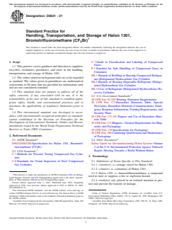 4.1 This practice provides requirements for the handling, transportation, and storage of Halon 1301 encountered in distribution