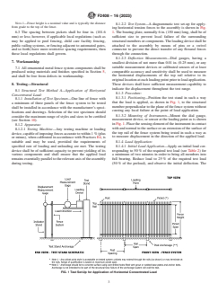 ASTM F2408-16(2023) is a technical specification published by ASTM International. Its full title is "Standard Specification for Ornamental Fences Employing Galvanized Steel Tubular Pickets". This standard covers: ABSTRACT This specification establishes the minimum requirements for coated tubular picket ornamental fence systems fabricated from galvanized steel components. Steel material for tubular picket ornamental fence system structural components shall be galvanized by the hot-dip process, either after forming, or prior to forming. Powder coatings applied to the exterior surface of fence components shall be polymer material: polyester or epoxy and polyester combinations. Wet coating applied to the exterior surface of fence components shall be a two-coat paint application system (one coat of epoxy, polyester or polyurethane primer; one coat of polyester, polyurethane, or acrylic liquid). Fittings, fasteners, and decorative accessories for ornamental steel fence systems shall be manufactured with a material and finish coating that meets the same protective coating performance requirements as required for panels and posts. Four structural test methods shall be conducted: Method A which is application of horizontal concentrated load, Method B which is application of vertical concentrated load, Method C which is application of horizontal thrust load to infill areas, and Method D which is application of horizontal cone penetration load. Different tests shall also be performed in order to determine the following properties of the fence system coatings: adhesion, corrosion resistance, impact resistance, and weathering resistance. SCOPE 1.1 This specification establishes the minimum requirements for coated tubular picket ornamental fence systems fabricated from galvanized steel components. 1.2 The requirements of this specification do not apply to vertical bar fence systems utilizing solid bar or wrought iron materials. 1.3 The values stated in inch-pound units are to be regarded as standard. The values given in parentheses are mathematical conversions to SI units that are provided for information only and are not considered standard. 1.4 This international standard was developed in accordance with internationally recognized principles on standardization established in the Decision on Principles for the Development of International Standards, Guides and Recommendations issued by the World Trade Organization Technical Barriers to Trade (TBT) Committee.