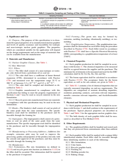 - Specifies requirements for raw materials (fillers must be derived from petroleum or coal tar cokes with measured thermal expansion)