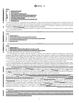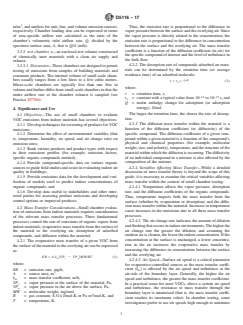 4.2 Mass Transfer Considerations—Small chamber evaluation of emissions from indoor materials requires consideration of the relevant mass transfer processes. Three fundamental processes control the rate of emissions of organic vapors from indoor materials; evaporative mass transfer from the surface of the material to the overlying air, desorption of adsorbed compounds, and diffusion within the material.