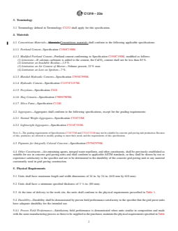 - Material Requirements: The standard details the types and specifications for cementitious materials, aggregates, and admixtures used in manufacturing concrete grid paving units. Products must comply with relevant ASTM references for: