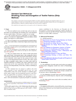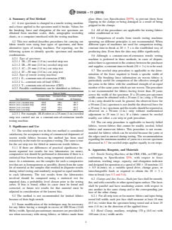 - Testing Procedures: The standard details both raveled strip and cut strip testing, specifying their applicability to different fabric types and structures.