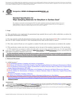 Keywords: ASTM D7707, beryllium, wipe sampling materials, surface dust, occupational health, industrial hygiene, settled dust sampling, air quality standards, workplace contamination, sampling wipes.