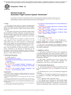 SIGNIFICANCE AND USE 4.1 The guide is intended to be used to assess competencies of qualified individuals who wish to become certified as an Automatic Flight Control System technician through a program such as the National Center for Aerospace and Transportation Technologies (NCATT). 4.2 The guide is intended to be used in concert with a certification provider’s structure and materials for management, exam delivery, and candidate preparation. SCOPE 1.1 The purpose of this guide is to address the fundamental subject knowledge activities and functions for avionics professionals to be titled Automatic Flight Control System (AFCS) Technician. 1.2 This guide is the basis for the Automatic Flight Control System Technician (AFCS) certification, an endorsement to the Aircraft Electronics Technician (AET) certification. Candidates must be a certified AET to take the certification exam associated with this guide. 1.3 This standard does not purport to address all of the safety concerns, if any, associated with its use. It is the responsibility of the user of this standard to establish appropriate safety, health, and environmental practices and determine the applicability of regulatory limitations prior to use. 1.4 This international standard was developed in accordance with internationally recognized principles on standardization established in the Decision on Principles for the Development of International Standards, Guides and Recommendations issued by the World Trade Organization Technical Barriers to Trade (TBT) Committee.