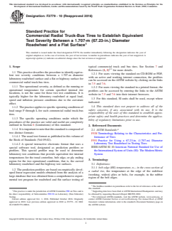 1.1 This practice describes the procedure to identify equivalent test severity conditions between a 1.707-m diameter laboratory roadwheel surface and a flat or highway surface for commercial radial truck-bus tires.