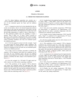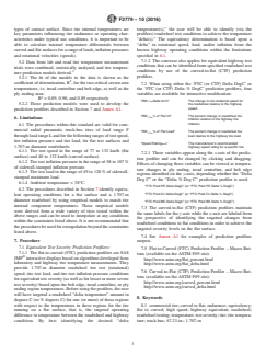 SIGNIFICANCE AND USE 5.1 Historically, tires have been tested for endurance by a variety of test methods. Some typical testing protocols have been: (1) proving grounds or highway testing over a range of speeds, loads, and inflations, (2) testing on fleets of vehicles for extended periods of time, and (3) indoor (laboratory) testing of tires loaded on a rotating 1.707-m diameter roadwheel; however, the curved surface of a 1.707-m diameter roadwheel results in a significantly different tire behavior from that observed on a flat or highway surface. 5.1.1 This practice addresses the need for providing equivalent test severity over a range of typical tire operating conditions between a 1.707-m diameter roadwheel surface (Practice F551) and a flat surface. There are different deformations of the tire footprint on curved versus flat surfaces resulting in different footprint mechanics, stress/strain cycles, and significantly different internal operating temperatures for the two types of contact surface. Since tire internal temperatures are key parameters influencing tire endurance or operating characteristics under typical use conditions, it is important to be able to calculate internal temperature differentials between curved and flat surfaces for a range of loads, inflation pressures and rotational velocities (speeds). 5.2 Data from lab and road tire temperature measurement trials were combined, statistically analyzed, and tire temperature prediction models derived.3 5.2.1 The fit of the models to the data is shown as the coefficient of determination, R2, for the two critical crown area temperatures, i.e. tread centerline and belt edge, as well as the ply ending area: R2 = 0.89, 0.90, and 0.89 respectively 5.2.2 These prediction models were used to develop the prediction profilers described in Section 7 and Annex A1. SCOPE 1.1 This practice describes the procedure to identify equivalent test severity conditions between a 1.707-m diameter laboratory roadwheel surface and a flat or highway surface for commercial radial truck-bus tires. 1.1.1 Tire operational severity, as defined as the running or operational temperature for certain specified internal tire locations, is not the same for these two test conditions. It is typically higher for the laboratory roadwheel at equal load, speed and inflation pressure conditions due to the curvature effect. 1.1.2 The practice applies to specific operating conditions of load range F through L for such commercial radial truck-bus tires. 1.1.3 The specific operating conditions under which the procedures of the practice are valid and useful are completely outlined in Section 6 (Limitations) of this standard. 1.1.4 It is important to note that this standard is composed of two distinct formats: 1.1.4.1 The usual text format as published in this volume of the Book of Standards (Vol 09.02). 1.1.4.2 A special interactive electronic format that uses a special software tool, designated as prediction profilers or profilers. This special profiler may be used to determine laboratory test conditions that provide equivalent tire internal temperatures for the tread centerline, belt edge, or ply ending region for the two operational conditions, that is, the curved laboratory roadwheel and flat highway test surfaces. 1.2 The prediction profilers are based on empirically developed linear regression models obtained from the analysis of a large database that was obtained from a comprehensive experimental test program for roadwheel and flat surface testing of typical commercial truck and bus tires. See Section 7 and References (1, 2)2,3 for more details. 1.2.1 For users viewing the standard on CD-ROM or PDF, with an active and working internet connection, the profilers can be accessed on the ASTM website by clicking on the links in 7.5 and 7.6. 1.2.2 For users viewing the standard in a printed format, the profilers can be accessed by entering the links to the ASTM ...
