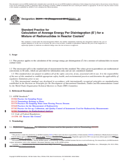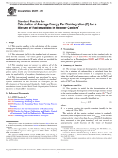 Keywords: ASTM D5411-21, average energy per disintegration, reactor coolant, radionuclide mixture, gamma spectrometry, nuclear reactor, radiological monitoring, activity limit, regulatory compliance, radiochemistry standards.
