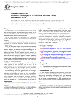 ASTM D3551-17 - Standard Practice for Laboratory Preparation of Soil-Lime Mixtures Using Mechanical Mixer