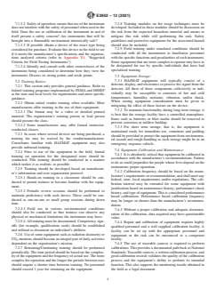 SIGNIFICANCE AND USE 5.1 This guide provides information that could be used to: 5.1.1 Establish a hazardous material instrument program; 5.1.2 Help ensure that consistently reliable instruments are available for the detection of hazardous materials; and 5.1.3 Provide the safety professional with the means to evaluate the risk and facilitate the mitigation of the threat from hazardous materials. 5.2 This guide provides information to help perform the following: 5.2.1 Select detection equipment; 5.2.2 Maintain the equipment in a manner that supports its immediate use when required; and 5.2.3 Store equipment using proper methods and conditions between uses. 5.2.4 Calibrate equipment in accordance with manufacturer’s recommendations and regulatory requirements: 5.2.4.1 At appropriate intervals; 5.2.4.2 Using appropriate standards; and 5.2.4.3 While maintaining proper documentation of calibration and repair. 5.2.5 Use and verify equipment performance: 5.2.5.1 As recommended by the manufacturer for its intended application; 5.2.5.2 By performing functional checks; and 5.2.5.3 By knowing any limitations of use. 5.3 This guide also provides information regarding the types of materials to be included in training programs for the use and maintenance of the equipment. SCOPE 1.1 This guide provides techniques that can be used to ensure the proper operation and use of Hazardous Material detection equipment. This document cannot replace education or experience and should be used in conjunction with professional judgment. Not all aspects of this guide may be applicable in all circumstances. 1.2 This guide is not intended to represent or replace any accreditation or certification documents by which the adequacy of a given professional service must be judged. 1.3 This guide does not purport to address all of the safety concerns, if any, associated with its use. It is the responsibility of the user of this guide to establish appropriate safety and health practices and determine the applicability of regulatory limitations prior to use. 1.4 When using HAZMAT equipment follow the manufacturer’s guidance and appropriate safety practices for the expected or suspected threat. 1.5 This standard does not purport to address all of the safety concerns, if any, associated with its use. It is the responsibility of the user of this standard to establish appropriate safety, health, and environmental practices and determine the applicability of regulatory limitations prior to use. 1.6 This international standard was developed in accordance with internationally recognized principles on standardization established in the Decision on Principles for the Development of International Standards, Guides and Recommendations issued by the World Trade Organization Technical Barriers to Trade (TBT) Committee.