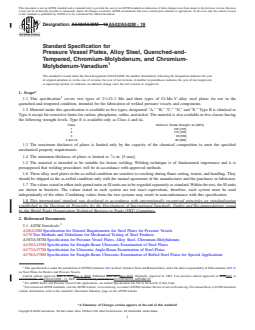 (Specification)Standard Specification for Pressure Vessel Plates, Alloy Steel, Quenched-and-Tempered, Chromium-Molybdenum, and Chromium-Molybdenum-Vanadium