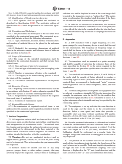 ASTM E3102-18 is a standard published by ASTM International. Its full title is "Standard Practice for Microwave Examination of Polyethylene Electrofusion Joints Used in Piping Application". This standard covers: SIGNIFICANCE AND USE 5.1 Polyethylene piping has been used instead of steel alloys in the petrochemical, power, water, gas distribution, and mining industries due to its resistance to corrosion and erosion and reliability. Recently, polyethylene pipe has also been used for nuclear safety related cooling water applications. 5.2 MW examination is useful for detecting various flaws that are known to occur in polyethylene electrofused joints. SCOPE 1.1 This practice covers microwave (MW) examination of electrofusion joints made entirely of polyethylene for the purpose of joining polyethylene piping. Note 1: The notes in this practice are for information only and shall not be considered part of this practice. Note 2: This practice references HDPE and MDPE for pipe applications as defined by Specification D3350. 1.2 The electrofusion joining process can be subject to a variety of flaws including, but not limited to, lack of fusion, particulate contamination, inclusions, and voids. 1.3 The practice is intended to be used on joint thicknesses of 0.5 in. to 4 in. (12 mm to 100 mm) and diameters 4 in. (100 mm) and greater. Greater and lesser thicknesses and lesser diameters may be tested using this standard practice if the technique can be demonstrated to provide adequate detection on mockups of the same wall thickness and geometry. 1.4 This practice can be applied to post assembly inspection of polyethylene electrofusion joints. 1.5 This practice does not specify acceptance criteria. 1.6 The values stated in inch-pound units are to be regarded as standard. The values given in parentheses are mathematical conversions to SI units that are provided for information only and are not considered standard. 1.7 This standard does not purport to address all of the safety concerns, if any, associated with its use. It is the responsibility of the user of this standard to establish appropriate safety, health, and environmental practices and determine the applicability of regulatory limitations prior to use. 1.8 This international standard was developed in accordance with internationally recognized principles on standardization established in the Decision on Principles for the Development of International Standards, Guides and Recommendations issued by the World Trade Organization Technical Barriers to Trade (TBT) Committee.
