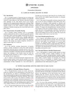 1.1 This specification2 covers the procedures and acceptance standards for the determination of reduction of area using a tension test specimen whose axis is perpendicular to the rolled surfaces of steel plates 1 in. [25 mm] and greater in thickness. The principal purpose of the testing is to provide a measure of the resistance of a steel plate to lamellar tearing. (See Appendix X1.)
