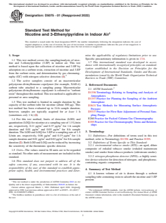 ASTM D5075-01(2022) - Standard Test Method for Nicotine and 3-Ethenylpyridine in Indoor Air