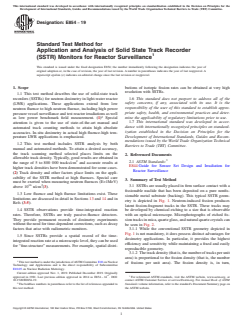 ASTM E854-19: Standard Test Method for Application and Analysis of Solid State Track Recorder (SSTR) Monitors for Reactor Surveillance establishes procedures for using solid-state track recorders to perform neutron dosimetry in light-water reactor (LWR) environments. This method covers a wide fluence range and supports both high-power reactor surveillance as well as low-power benchmark measurements. Emphasis is placed on high-accuracy measurements attainable through both manual and automated track scanning techniques, making it highly relevant for reactor operators, nuclear safety professionals, and research laboratories involved in reactor surveillance and neutron field characterization.