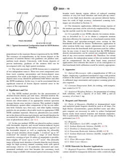 4.2 In this test method, SSTRs are placed in surface contact with fissionable deposits and record neutron-induced fission fragments. By variation of the surface mass density (μg/cm 2) of the fissionable deposit as well as employing the allowable range of track densities (from roughly 1 event/cm2 up to 105 events/cm2 for manual scanning), a range of total fluence sensitivity covering at least 16 orders of magnitude is possible, from roughly 102 n/cm 2 up to 5 × 10 18 n/cm2. The allowable range of fission track densities is broader than the track density range for high accuracy manual scanning work with optical microscopy cited in 1.2. In particular, automated and semi-automated methods exist that broaden the customary track density range available with manual optical microscopy. In this broader track density region, effects of reduced counting statistics at very low track densities and track pile-up corrections at very high track densities can present inherent limitations for work of high accuracy. Automated scanning techniques are described in Section 11.