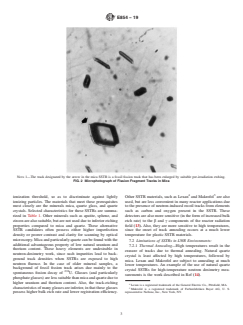 4.1 The SSTR method provides for the measurement of absolute-fission density per unit mass. Absolute-neutron fluence can then be inferred from these SSTR-based absolute fission rate observations if an appropriate neutron spectrum average fission cross section is known. This method is highly discriminatory against other components of the in-core radiation field. Gamma rays, beta rays, and other lightly ionizing particles do not produce observable tracks in appropriate LWR SSTR candidate materials. However, photofission can contribute to the observed fission track density and should therefore be accounted for when nonnegligible. For a more detailed discussion of photofission effects, see 14.4.