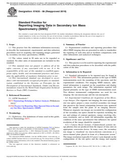 ASTM E1635-06(2019) is a standard published by ASTM International. Its full title is "Standard Practice for Reporting Imaging Data in Secondary Ion Mass Spectrometry (SIMS)". This standard covers: SIGNIFICANCE AND USE 5.1 This practice is to be used for reporting the experimental and data reduction procedures to be described with the publication of the data. SCOPE 1.1 This practice lists the minimum information necessary to describe the instrumental, experimental, and data reduction procedures used in acquiring and reporting images generated by secondary ion mass spectrometry (SIMS). 1.2 The values stated in SI units are to be regarded as standard. No other units of measurement are included in this standard. 1.3 This standard does not purport to address all of the safety concerns, if any, associated with its use. It is the responsibility of the user of this standard to establish appropriate safety, health, and environmental practices and determine the applicability of regulatory limitations prior to use. 1.4 This international standard was developed in accordance with internationally recognized principles on standardization established in the Decision on Principles for the Development of International Standards, Guides and Recommendations issued by the World Trade Organization Technical Barriers to Trade (TBT) Committee.