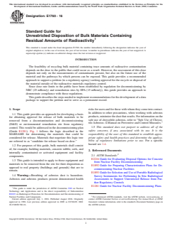 ASTM E1760-16 - Standard Guide for Unrestricted Disposition of Bulk Materials Containing Residual Amounts of Radioactivity