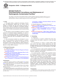 ASTM E2420-15(2021) - Standard Guide for Post-Deactivation Surveillance and Maintenance of Radiologically Contaminated Facilities