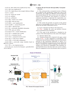 1.1 This specification covers the performance requirements for remote identification (Remote ID) of unmanned aircraft systems (UAS). Remote ID allows governmental and civil identification of UAS for safety, security, and compliance purposes. The objective is to increase UAS remote pilot accountability by removing anonymity while preserving operational privacy for remote pilots, businesses, and their customers. Remote ID is an enabler of enhanced operations such as beyond visual line of sight (BVLOS) operations as well as operations over people.