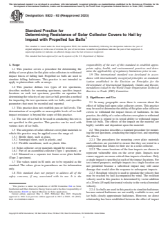 ASTM E822-92(2023) - Standard Practice for Determining Resistance of Solar Collector Covers to Hail by Impact with Propelled Ice Balls