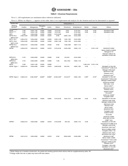 Note—This table gives the computed minimum % elongation value for each ⁄32 in. [0.79 mm] decrease in wall thickness. Where the wall thickness lies between two values above, the minimum elongation value is
