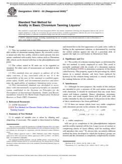 ASTM D3913-03(2020)e1 - Standard Test Method for Acidity in Basic Chromium Tanning Liquors